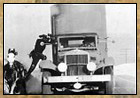 onto the side of a moving truck and into the cab.